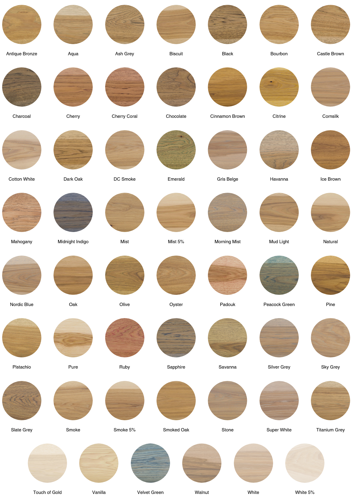 Uwaga: Zaleca się wykonanie próbki koloru przy użyciu próbki Oil Plus Part A i drewna z projektu, aby zobaczyć rzeczywiste rezultaty kolorystyczne.
